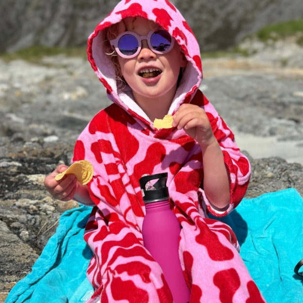 Ponchoen har en stor hette og smarte åpninger på siden som gjør det enkelt å skifte til og fra badetøy.